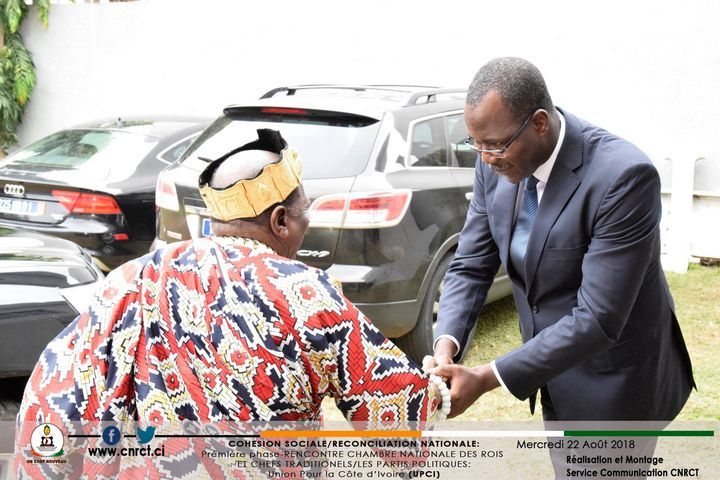 Dans le cadre des missions qui lui sont assignées par la Constitution Ivoirienne, entre autre : la Cohésion sociale, la Réconciliation nationale, la médiation et le renforcement du tissus social, la Chambre Nationale des Rois et Chefs Traditionnels(CNRCT) s’est proposée de rencontrer tous les acteurs politiques de la Côte d’Ivoire sans distinction, remplissant en cela son rôle traditionnel.