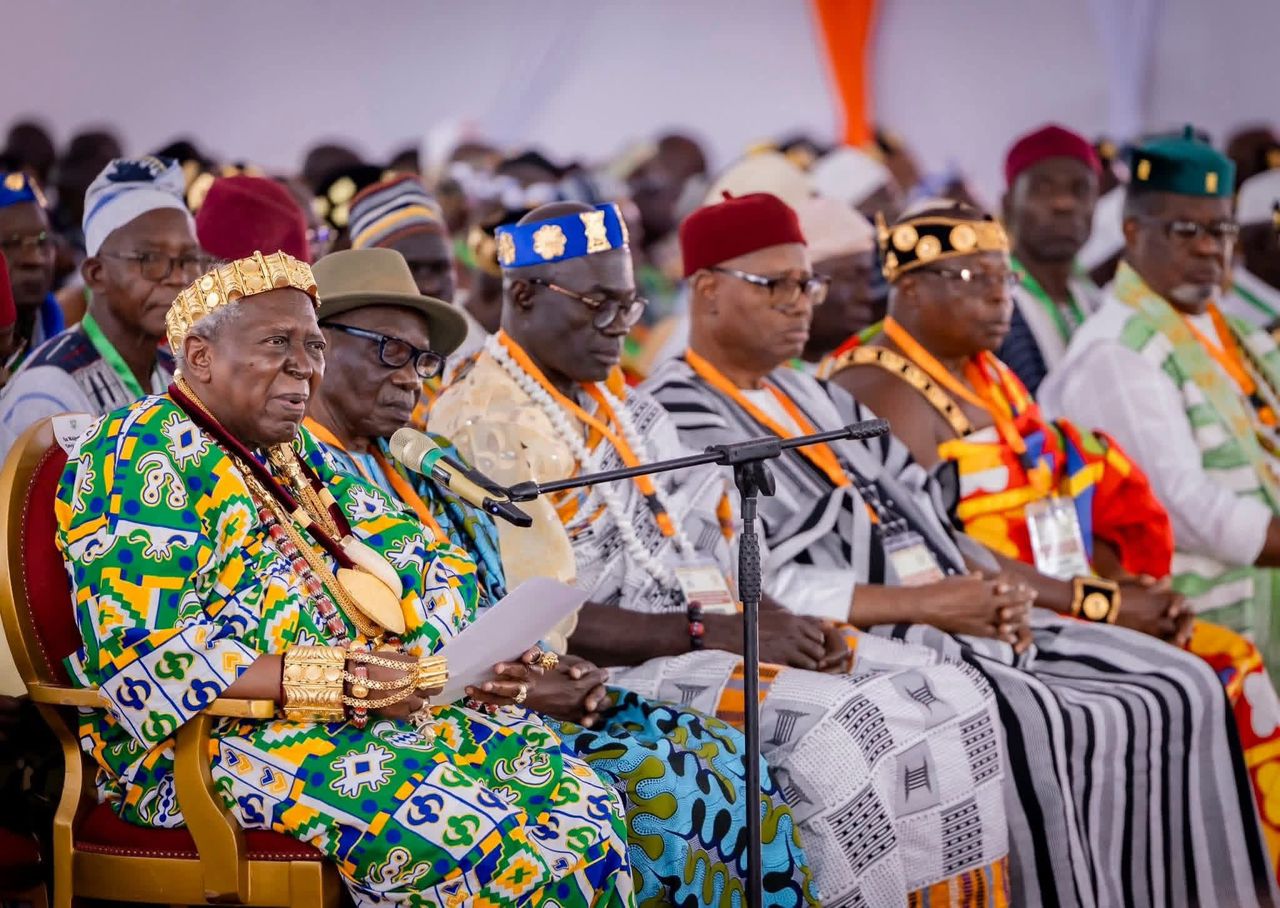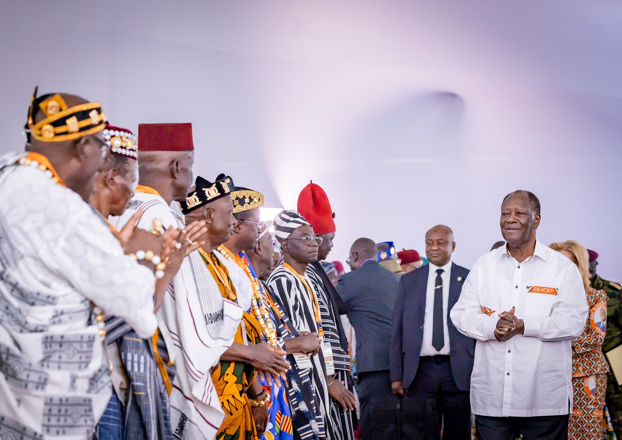 Excellence, permettez-moi, au nom de l’ensemble des Rois et Chefs traditionnels de Côte d’Ivoire, de vous rendre hommage. En effet, sous votre haute autorité, notre pays a connu des transformations majeures. Les infrastructures se sont modernisées, les conditions de vie des populations se sont améliorées, notre économie a gagné en résilience et la place de la Côte d’Ivoire dans le concert des nations s’est affirmée. Mais plus encore, vous avez su maintenir la paix dans un environnement parfois agité. Cette posture courageuse et sage, nous la saluons, et nous prions pour qu’elle inspire les générations futures.